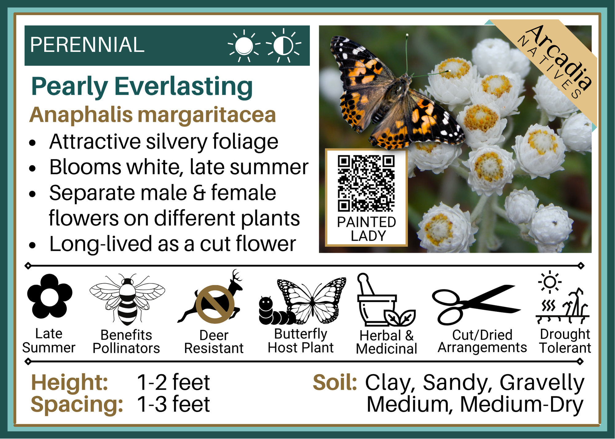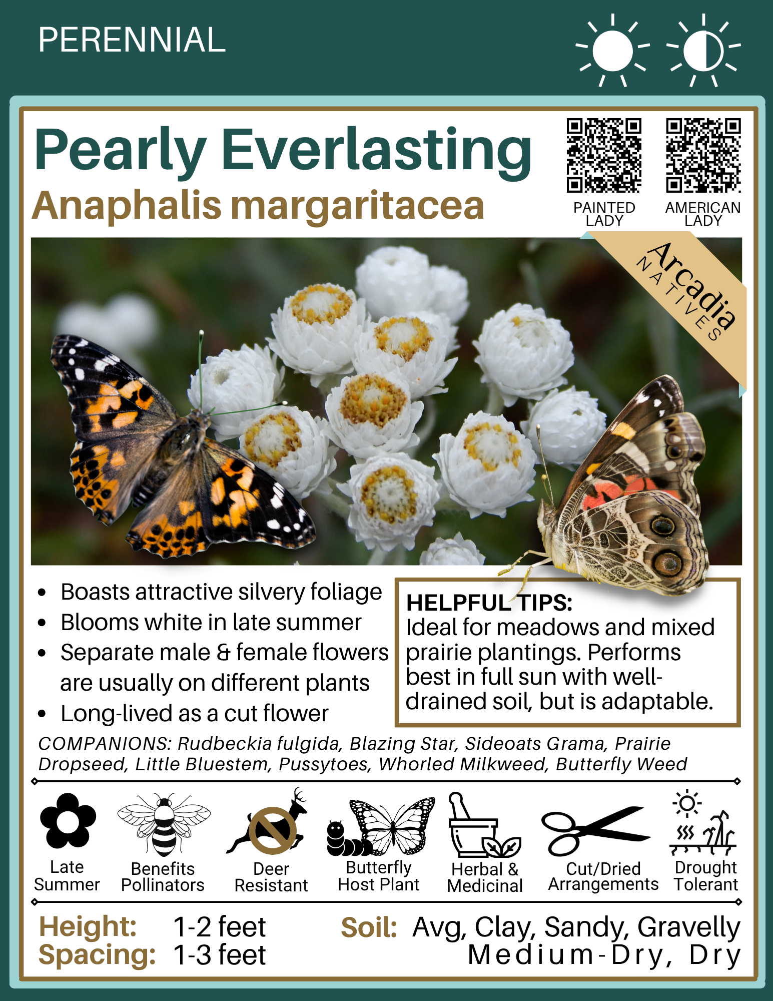 Below you will find detailed cards that can be downloaded for free and used for your own reference or printed out for plant swaps/sales etc. We hope the information here will help you select the best plant possible for your unique landscaping needs!