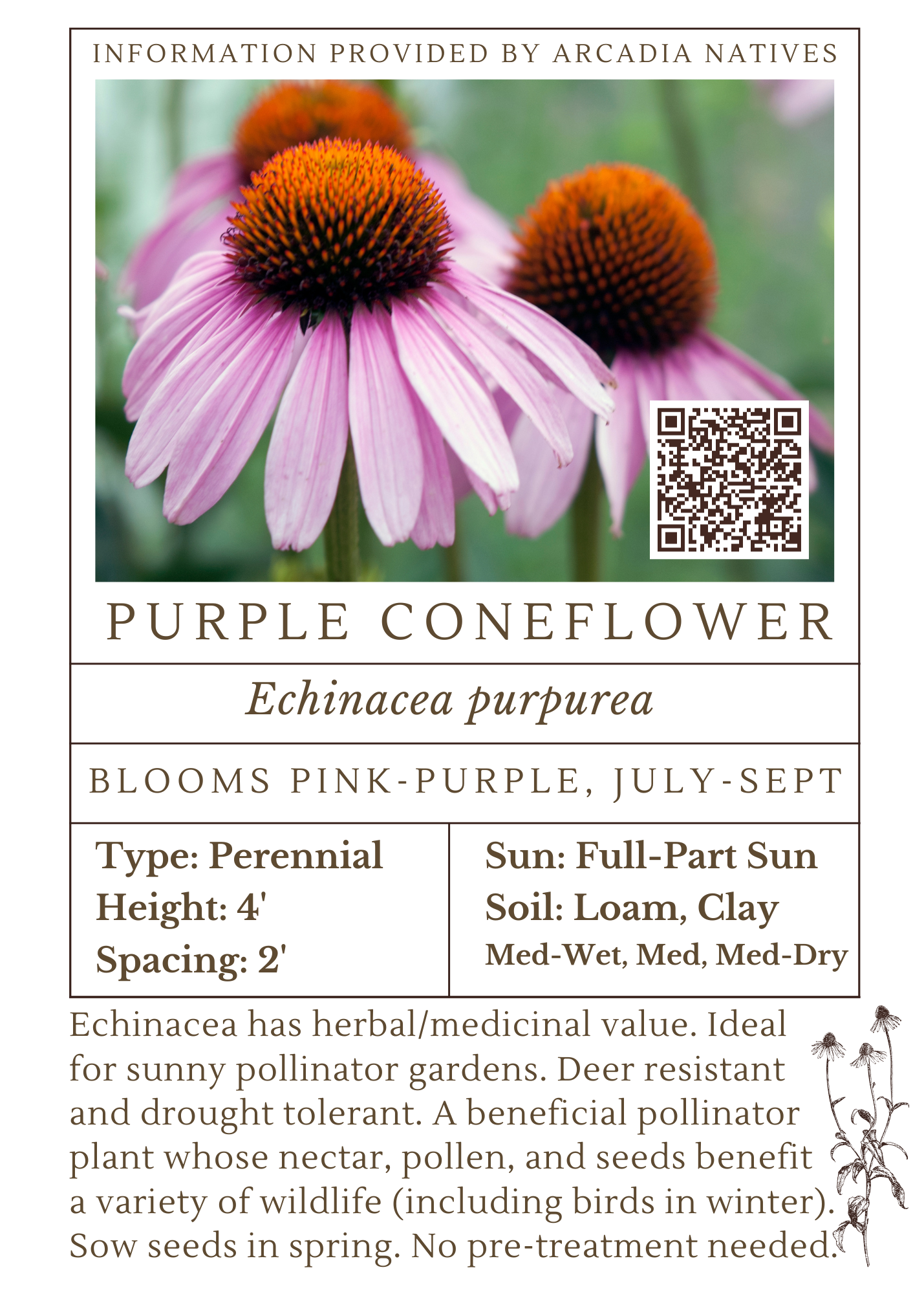 Shrink this image to fit onto labels for seed packets or print it on full-sized paper to use as a sign or educational handout. Not for commercial use. The QR code links back to this web page for easy access to the fact sheet & quick card.