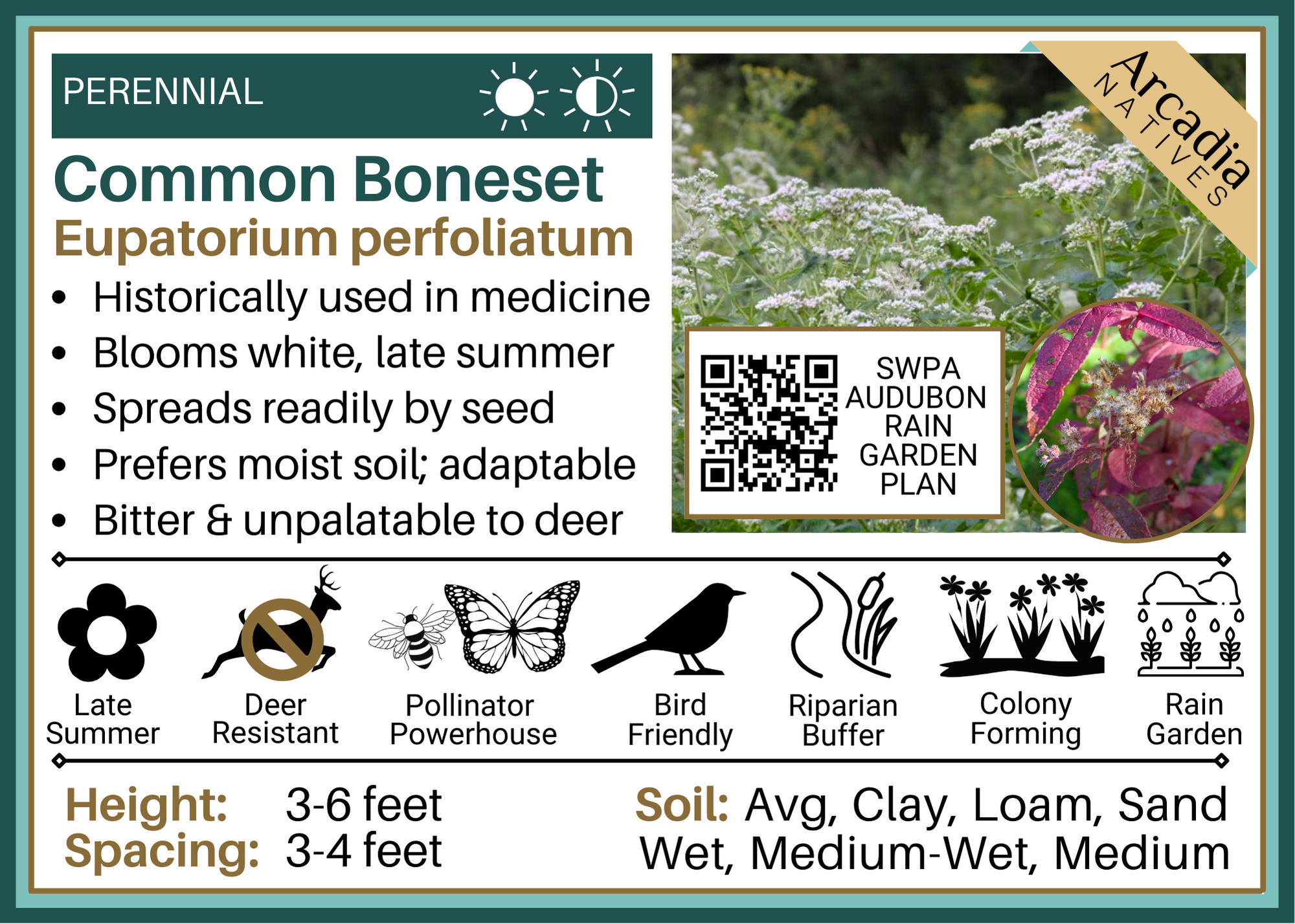 Check out our Photo Gallery and Video Clip of pollinators visiting Common Boneset.