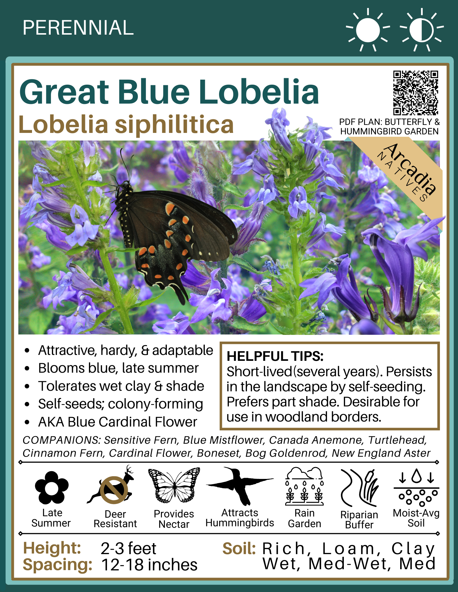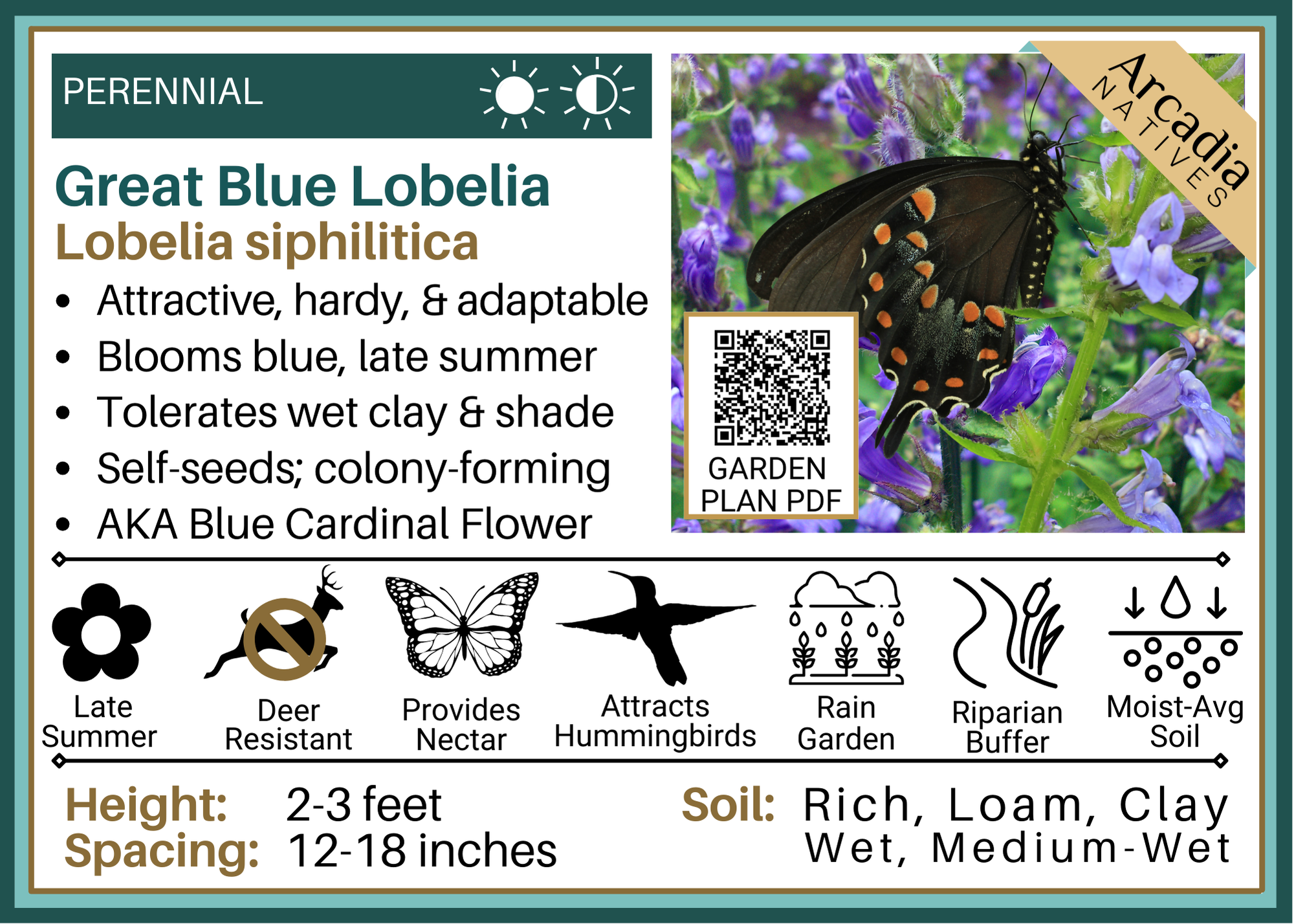Below you will find detailed cards that can be downloaded for free and used for your own reference or printed out for plant swaps/sales etc. We hope the information here will help you select the best plant possible for your unique landscaping needs!